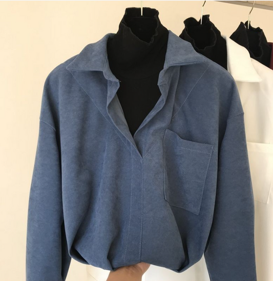 2024 Autumn and Winter Shirt Splicing Knitted Tops