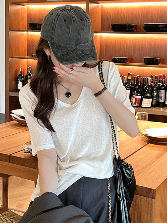 2024 Summer New Loose Bamboo Cotton Half Sleeve Cotton and Linen Top