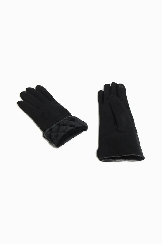 Faux Suede Quilted Gloves | Black-ABT08GY