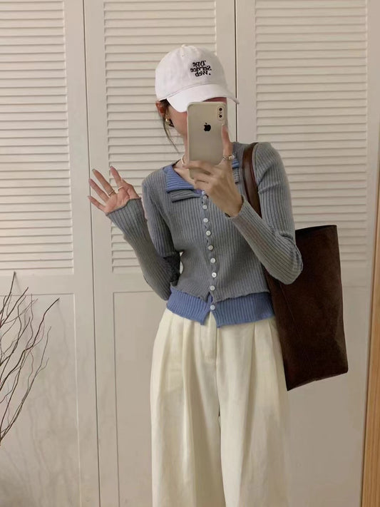 Fake Two-piece Long-sleeved Slim-fit Knitted Cardigan