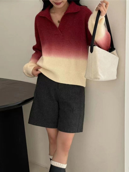 Fashionable Gradient Lapel Collar Pullover Sweater