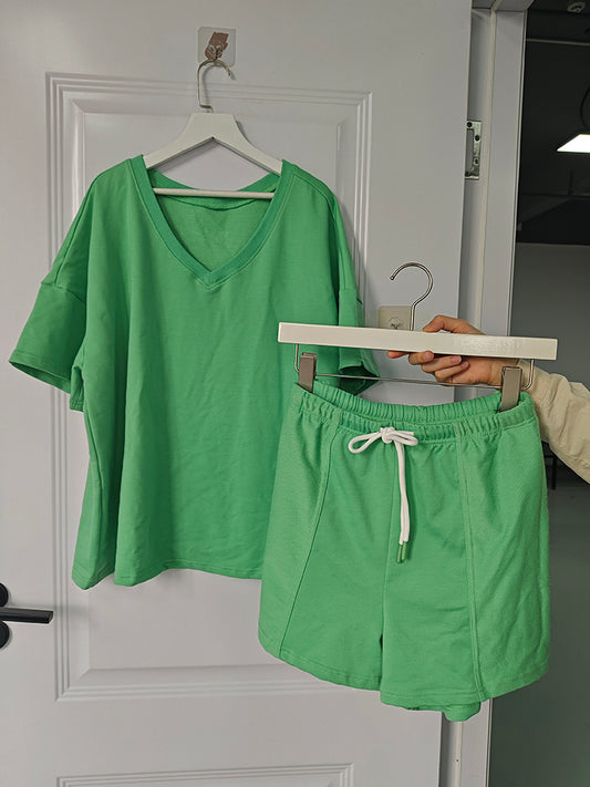 2025 Summer New Solid Color Short-sleeved Tops and Shorts Two-piece Suit- LC625586
