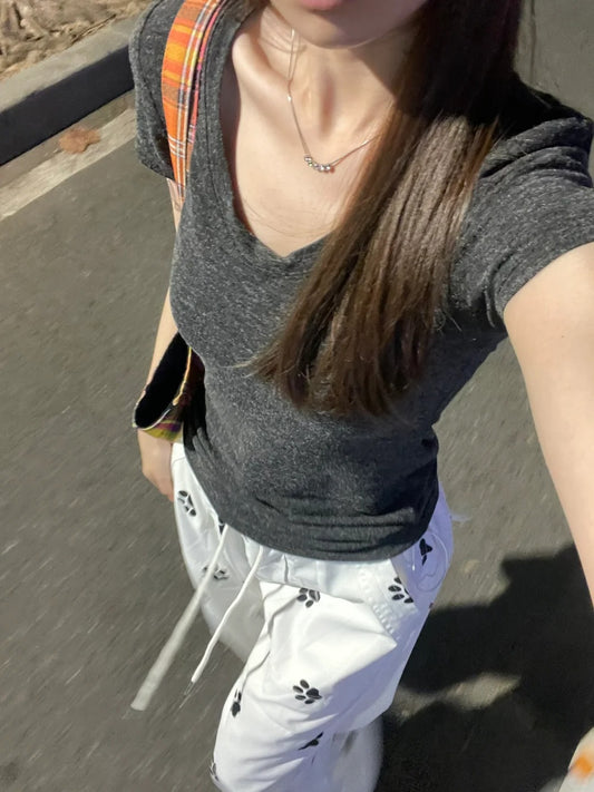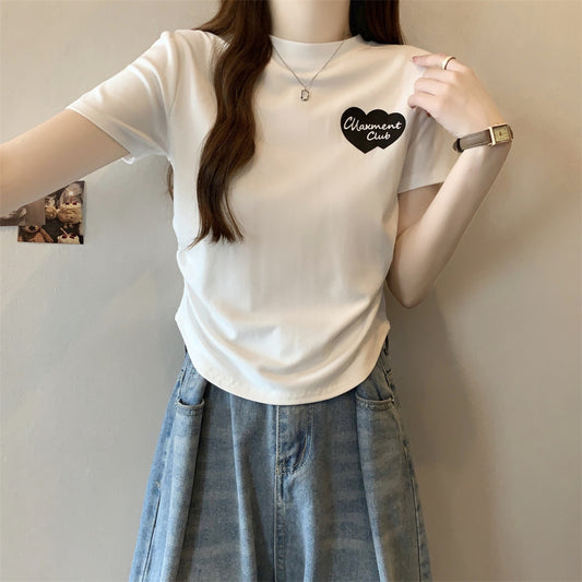 2025 Summer Short Sleeve Cotton Heart Printed T-Shirt-SPF-228