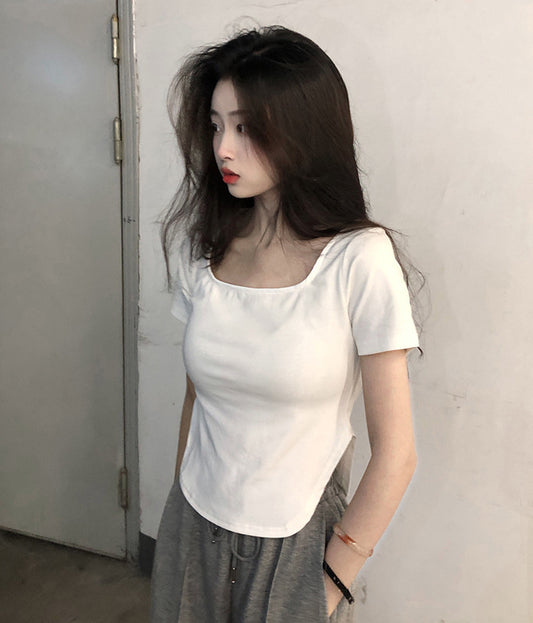 2025 Summer New Pure Large U-neck White Top-ABC29WT