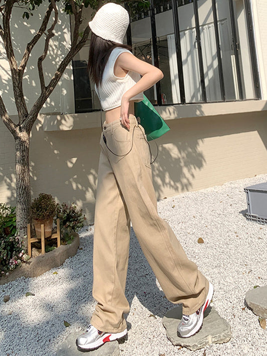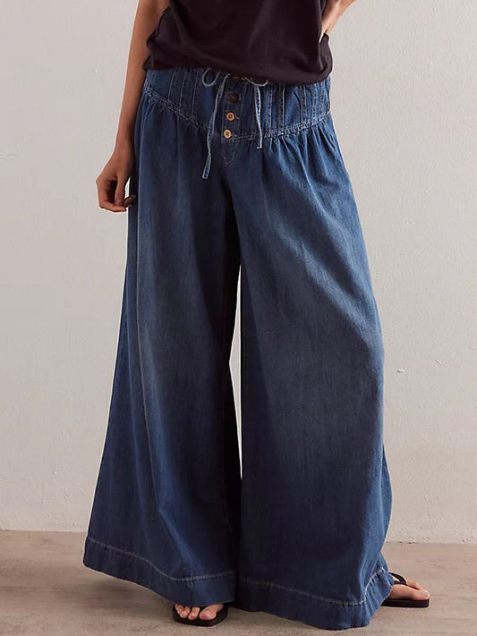 Women's Pleated Mid-waist Tie Loose Wide-leg Jeans