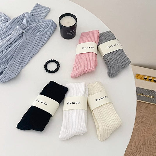 Women's Solid Color Calf Socks Thick Stitch Pile Socks