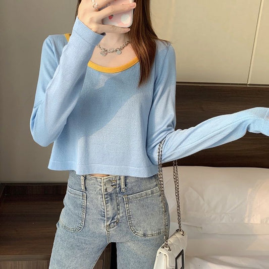 Women's Patchwork Long Sleeve Bottoming T-shirt-ABS2505BK