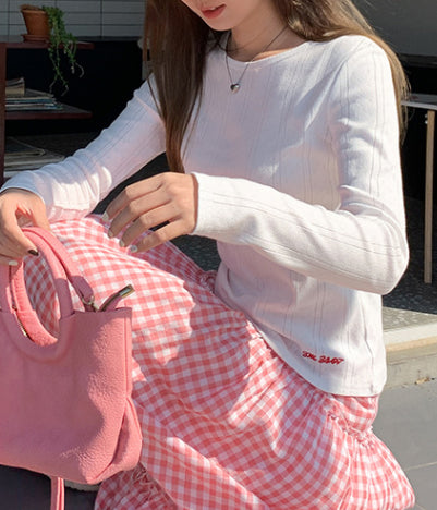 【Clearance】White Jacquard Textured Round Neck Long-sleeved T-shirt-FP8097WT