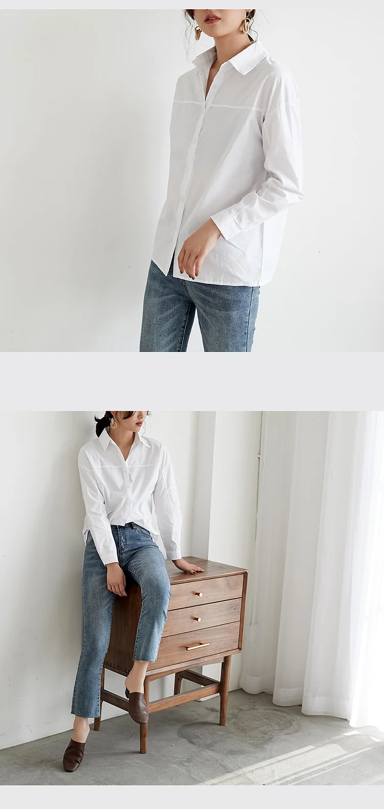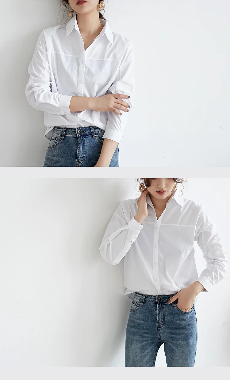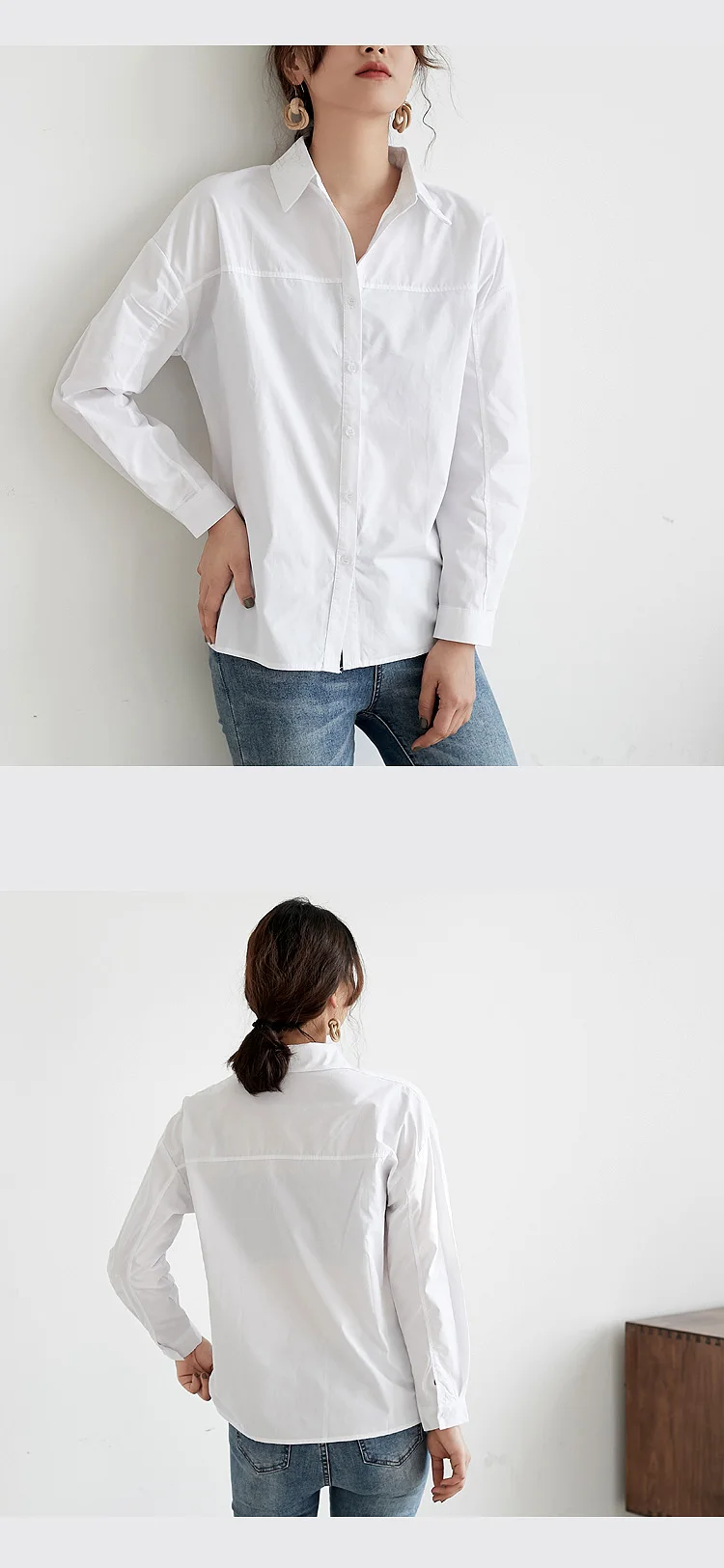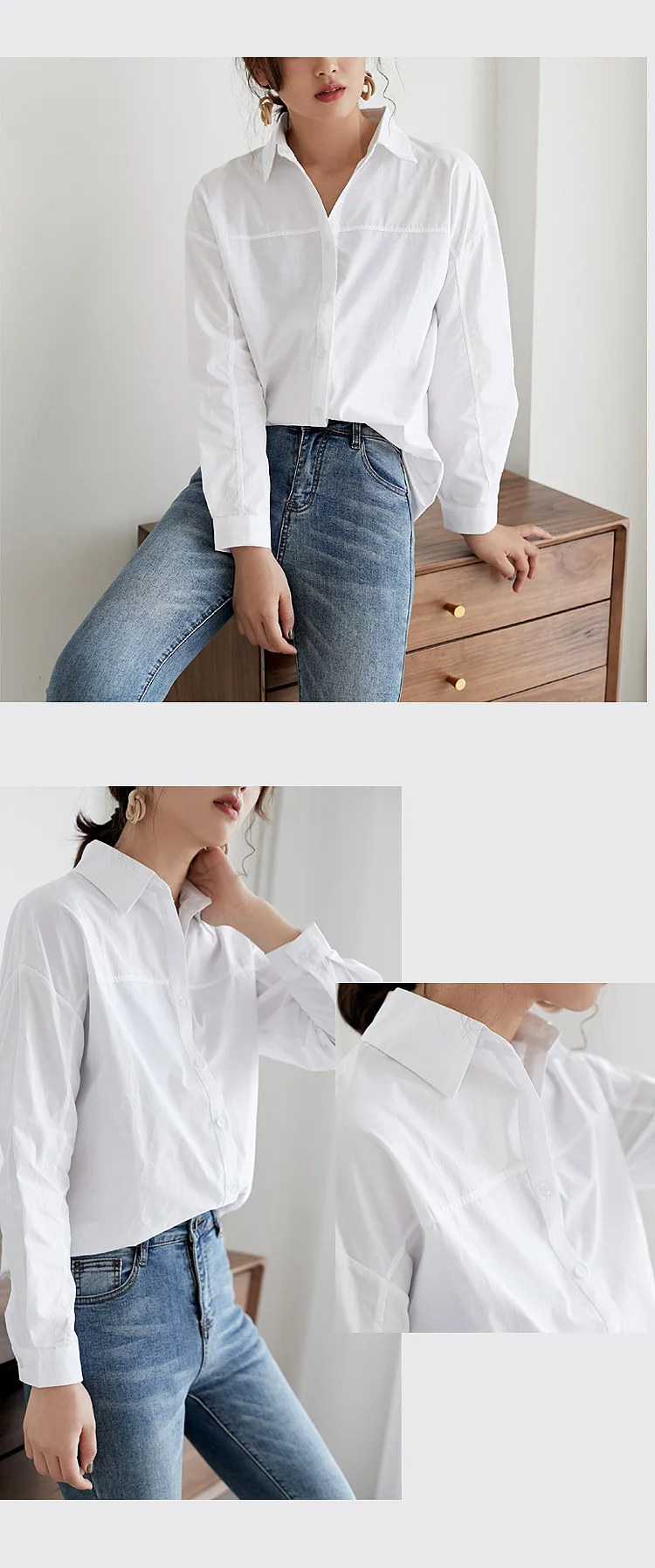 Cotton White Casual Women's Blouse New Autumn Turn-Down Collar Female Blouse Tops-ABT21AP